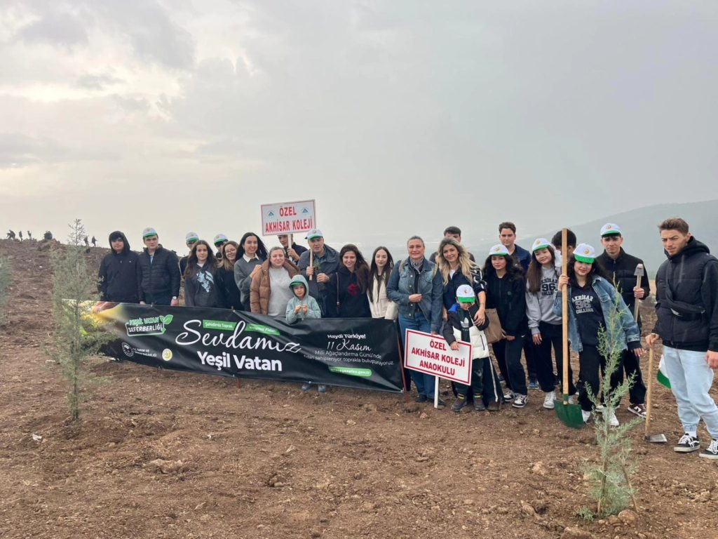 Milli Eğitim Bakanlığı tarafından, Gazi Mustafa Kemal Atatürk’ün emanet ettiği değerlere sahip çıkmak, vatan sevgisini ve millet bilincini güçlendirmek amacıyla 10 Kasım Atatürk’ü Anma Günü ile 11 Kasım Millî Ağaçlandırma Günü’nün anlam ve amaç bütünlüğü içinde düzenlenen fidan dikimi etkinliğine, Okulumuz Akhisar Koleji öğretmenleri ve öğrencileri katılım sağladı.
