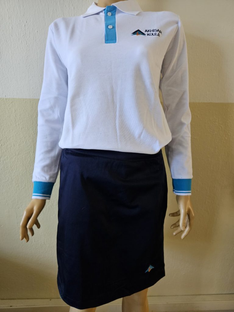 Kış Kıyafeti : Lacivert gabardin pantolon – Lacivert okul amblemli şort etek- Polo yaka okul