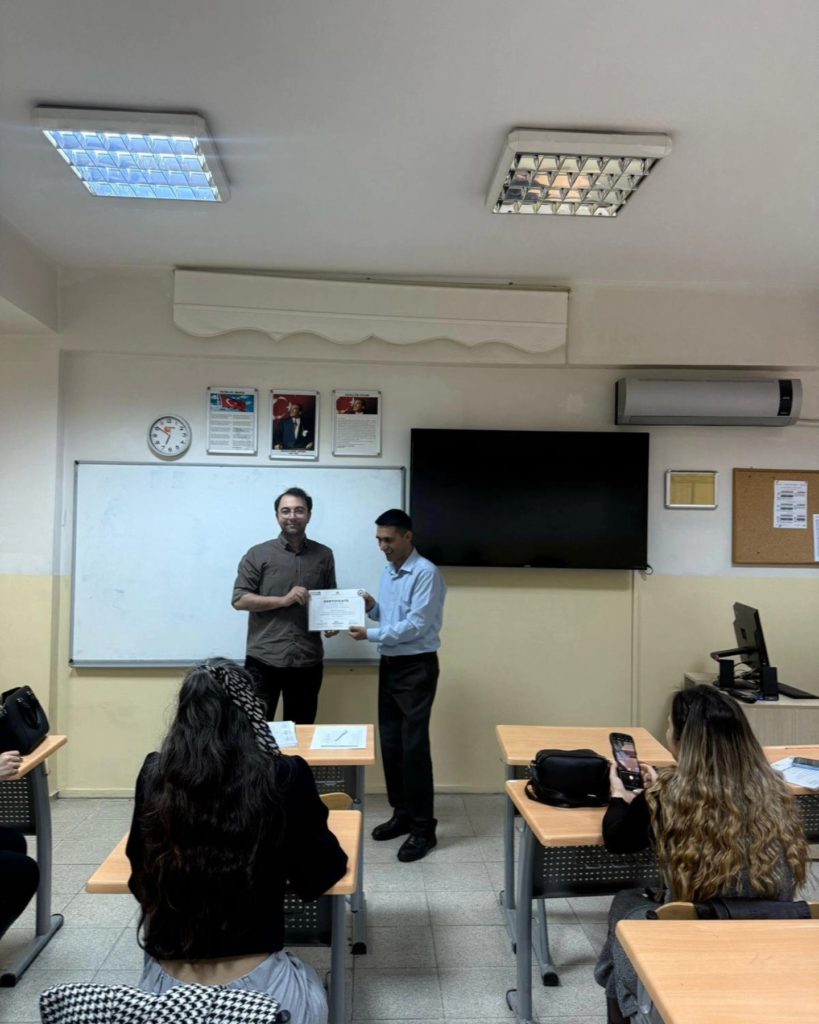 Okulumuz İngilizce öğretmenleri, İngilizce eğitimde yapay zekâ temelli öğrenme analitiği, ders tasarımı ve içerik geliştirme, dijital ölçme ve değerlendirme araçları, adaptif öğrenme platformları gibi konularda uzmanlar tarafından yönlendirici eğitim almış ve derslerde uygulamaya geçmiştir.